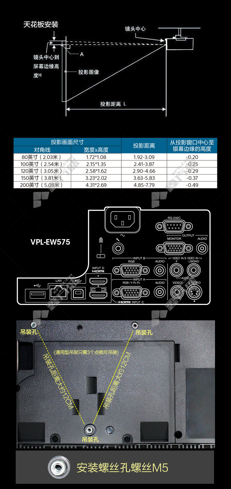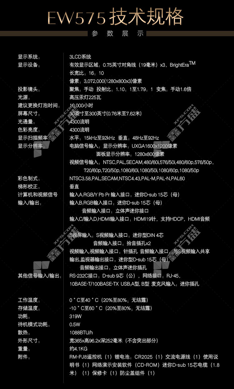 sony VPL-EW575 projector manufacturer standard configuration VPL-EW575 1280*800p standard white, no specifications
