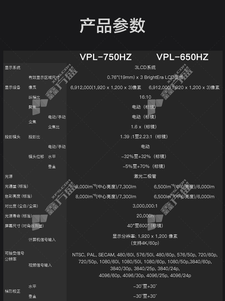 sony VPL-F750HZ standard configuration of engineering projector manufacturers VPL-F750HZ 1920*1200p standard white, no specifications