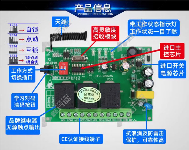yuanrui gate remote control module 3 channels 12 V no specifications for power supply