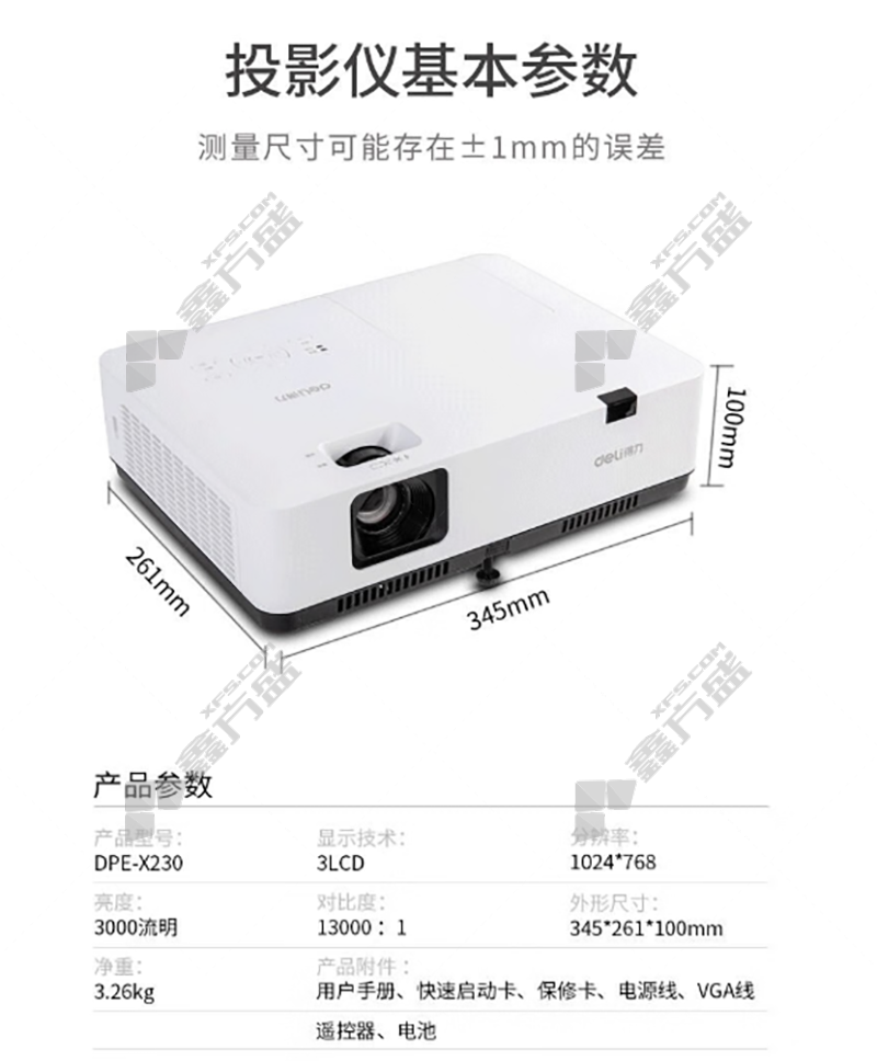 deli (deli) projector DPE-X230-D, includes electric remote control curtain, including installation but no specifications