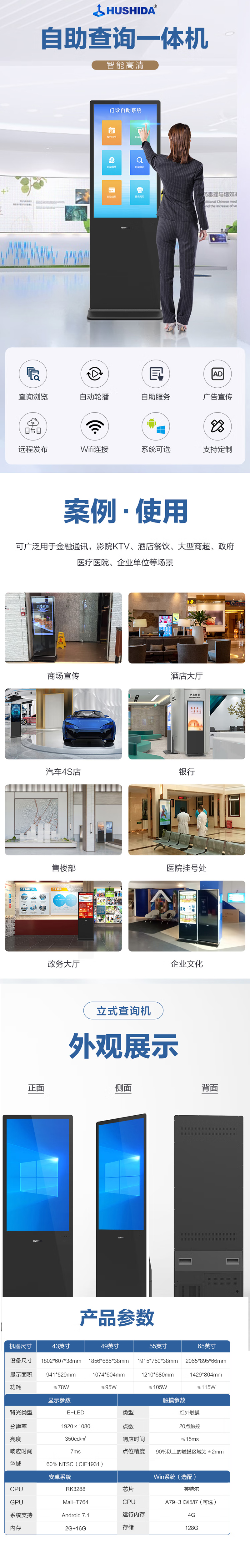 mutual vision ( HUSHIDA)55 inch floor-standing vertical advertising machine touch all-in-one machine touch lcd screen display android LSCM-55 no specifications