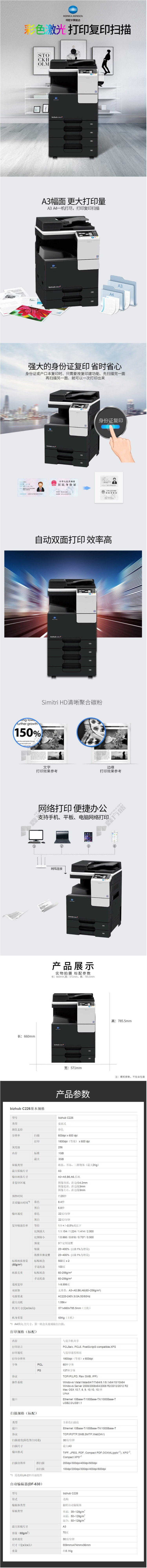 konica minolta bizhub C226 A3 color laser composite machine option 1 includes double-sided document feeder +four cartons +no specifications for the workbench