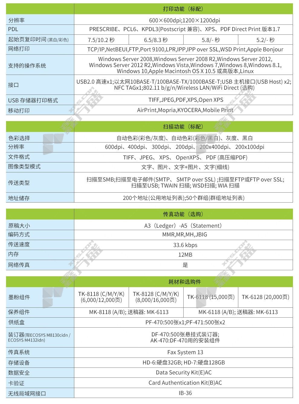 kyocera M8124cidn A3 color multifunctional digital composite machine optional 1 M8124cidn standard configuration includes document feeder +double paper box floor-standing no specification