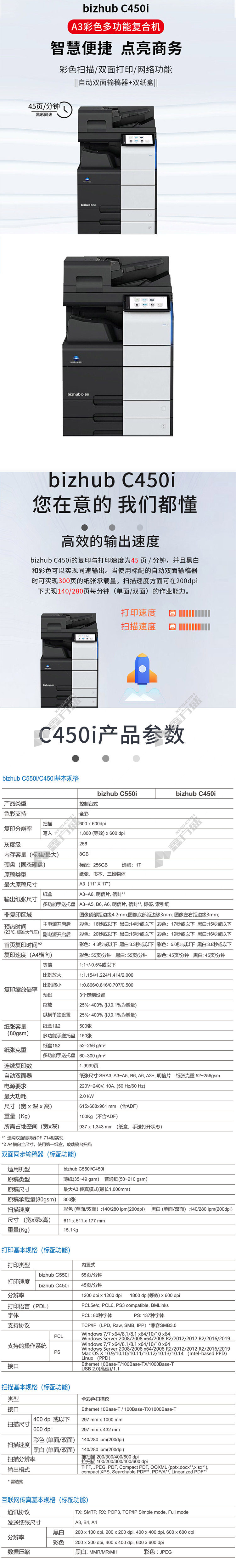 konica minolta C450i A3 color laser compound machine option 1 bizhub C450i includes duplex document feeder +no specifications for double paper boxes