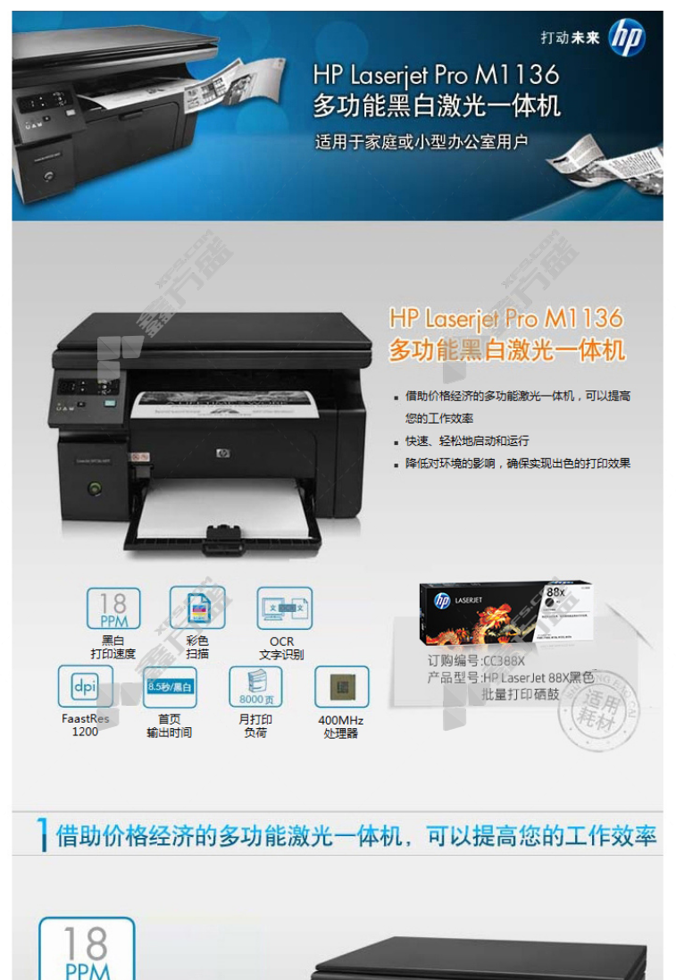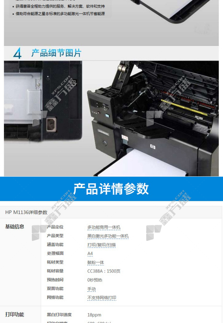 hp LaserJet Pro M1136 black and white laser all-in-one machine LaserJet Pro M1136 A4 no specifications