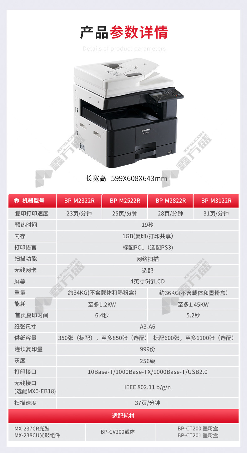 sharp A3 black and white laser copy, print and scan all-in-one machine BP-M2322R A3 no specifications