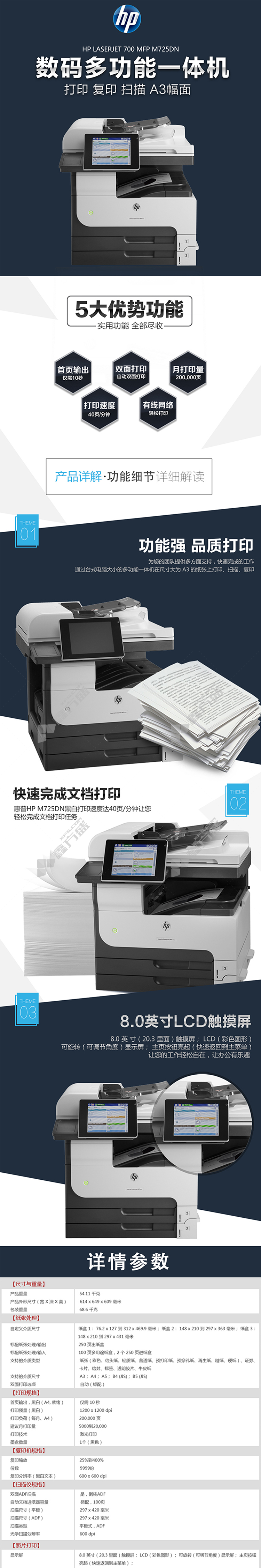 hp ( HP) M725z a3 black and white laser all-in-one machine M725z no specifications