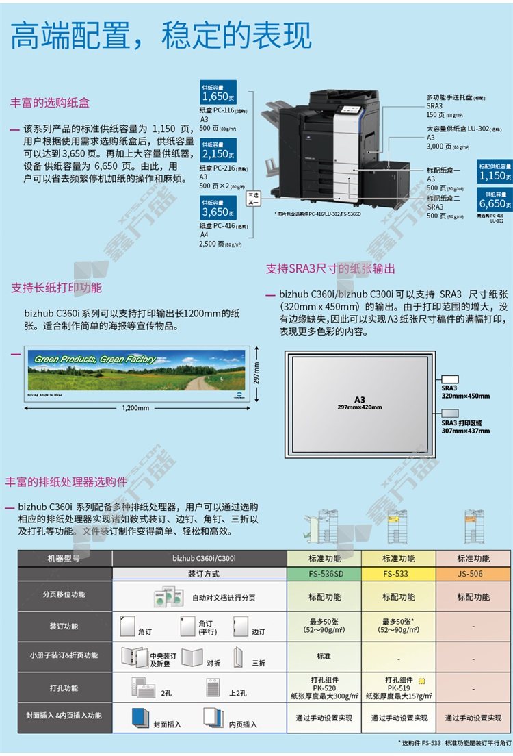 konica minolta bizhub C300i A3 color laser compound machine option 1 bizhub C300i includes document feeder +double carton workbench +finishing processor FS536SD+connection unit RU513 no specifications