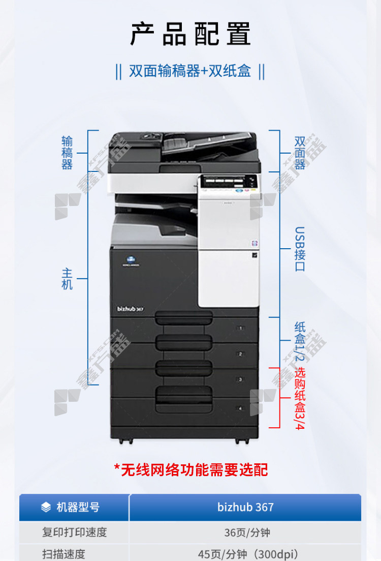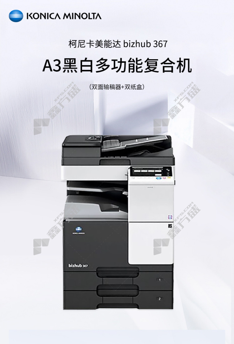 konica minolta 367 A3 black and white laser composite machine optional 6 367 including double paper boxes +original cover +no specifications for the workbench