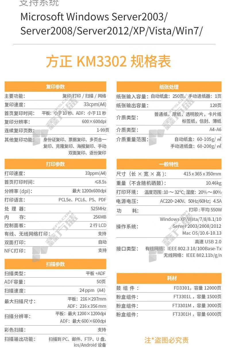 founder KM3302 black and white laser multifunction printer KM3302 standard configuration A4 34 page /minutes no specification