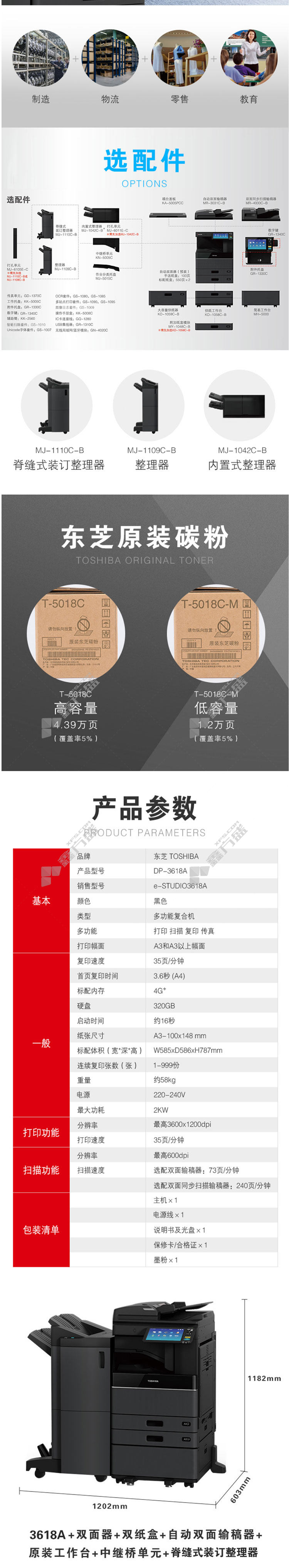 toshiba DP-3618A A3 black and white laser composite machine options 10 DP-3618A host +automatic document feeder +duplexer +double paper box +workbench +saddle binder no specification
