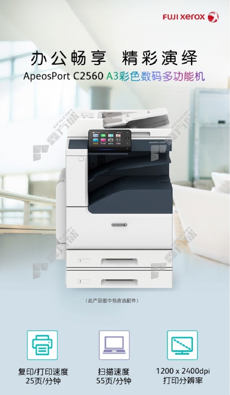 fuji xerox C2560 CPS 4Tray A3 color laser composite machine ApeosPort C2560 CPS 4Tray A3 includes document feeder +four cartons without specifications