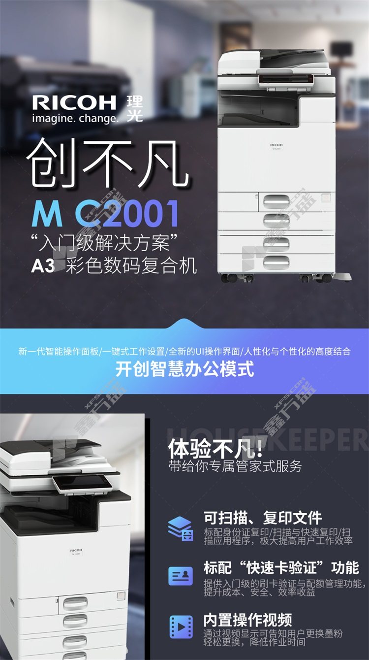 ricoh M C2001 A3 color laser composite machine M C2001 includes document feeder +no specifications for double paper boxes