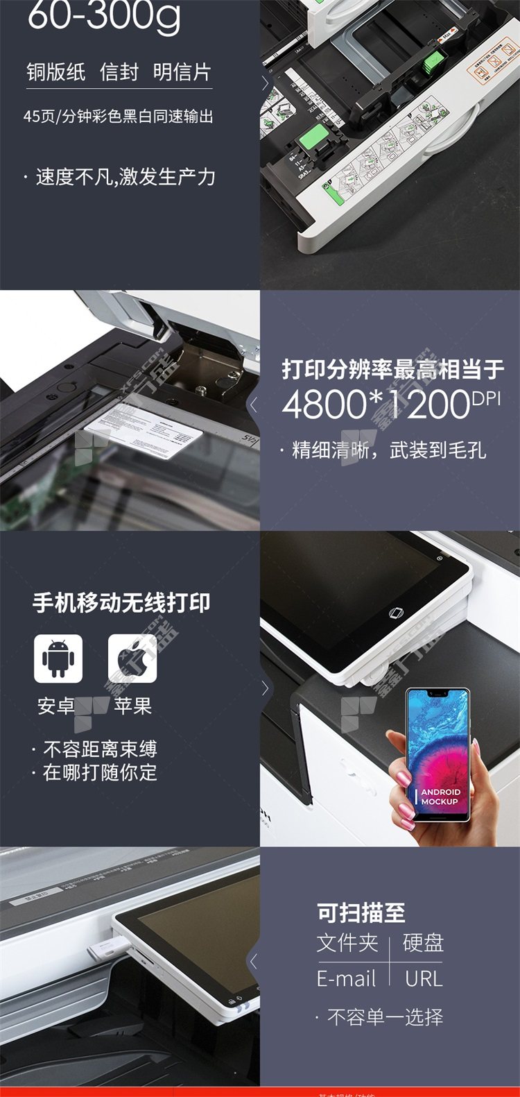 ricoh IM C4500 A3 color multifunctional digital composite machine options 4 C4500 includes document feeder +four cartons +binder +bridge unit has no specifications