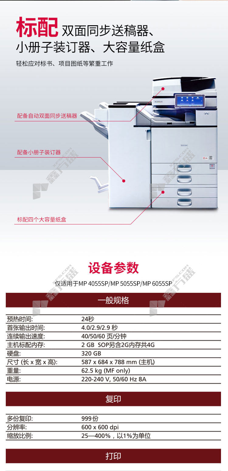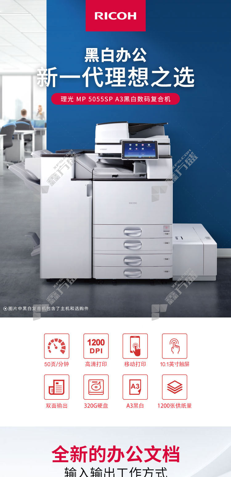 ricoh MP 5055SP A3 black and white laser composite machine options 4 MP5055SP includes duplex document feeder +four cartons +saddle binder no specification