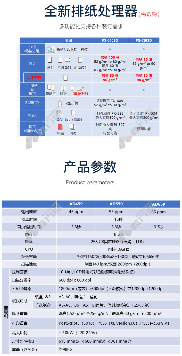 cathay AD659 A3 black and white multifunctional digital laser composite machine option 1 AD659 includes double-sided synchronous document feeder +double paper box +no specifications for the workbench