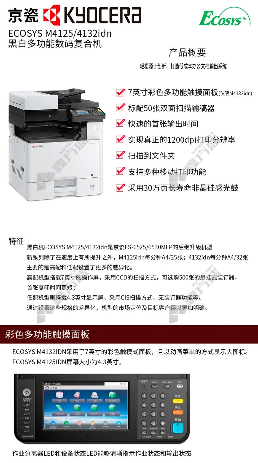 kyocera M4132idn A3 black and white multifunctional composite machine M4132idn includes duplex document feeder /duplexer has no specifications