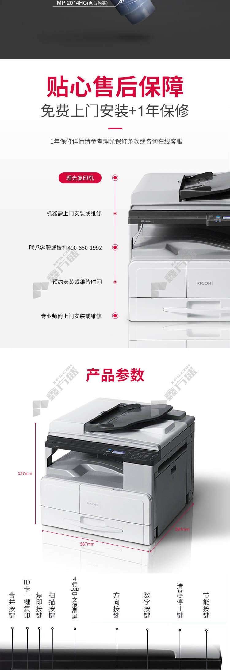ricoh MP 2014AD A3 black and white digital composite machine 2014 AD host +duplex document feeder +single carton has no specifications