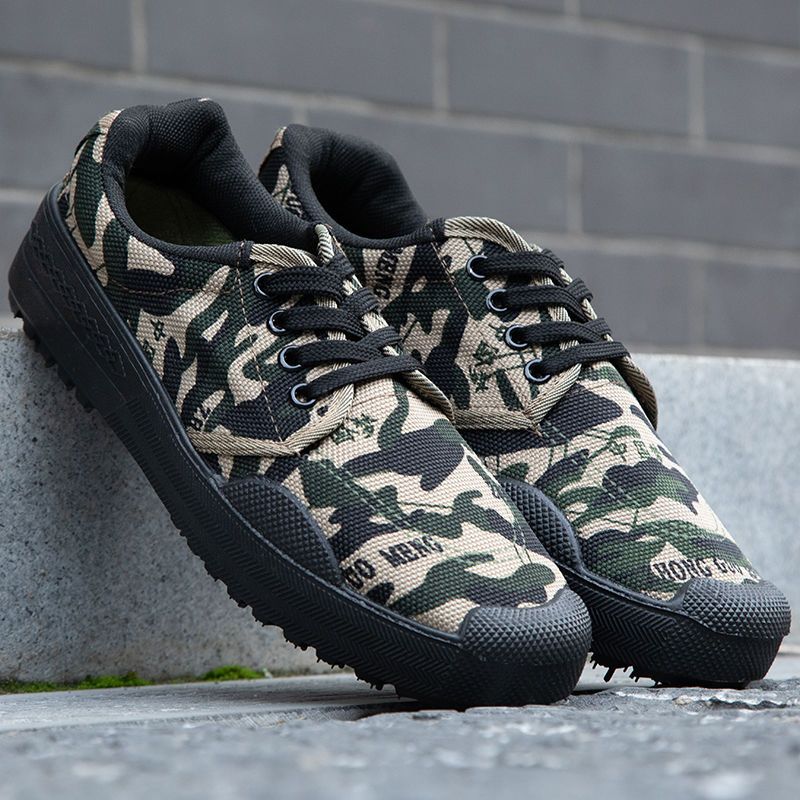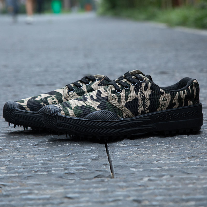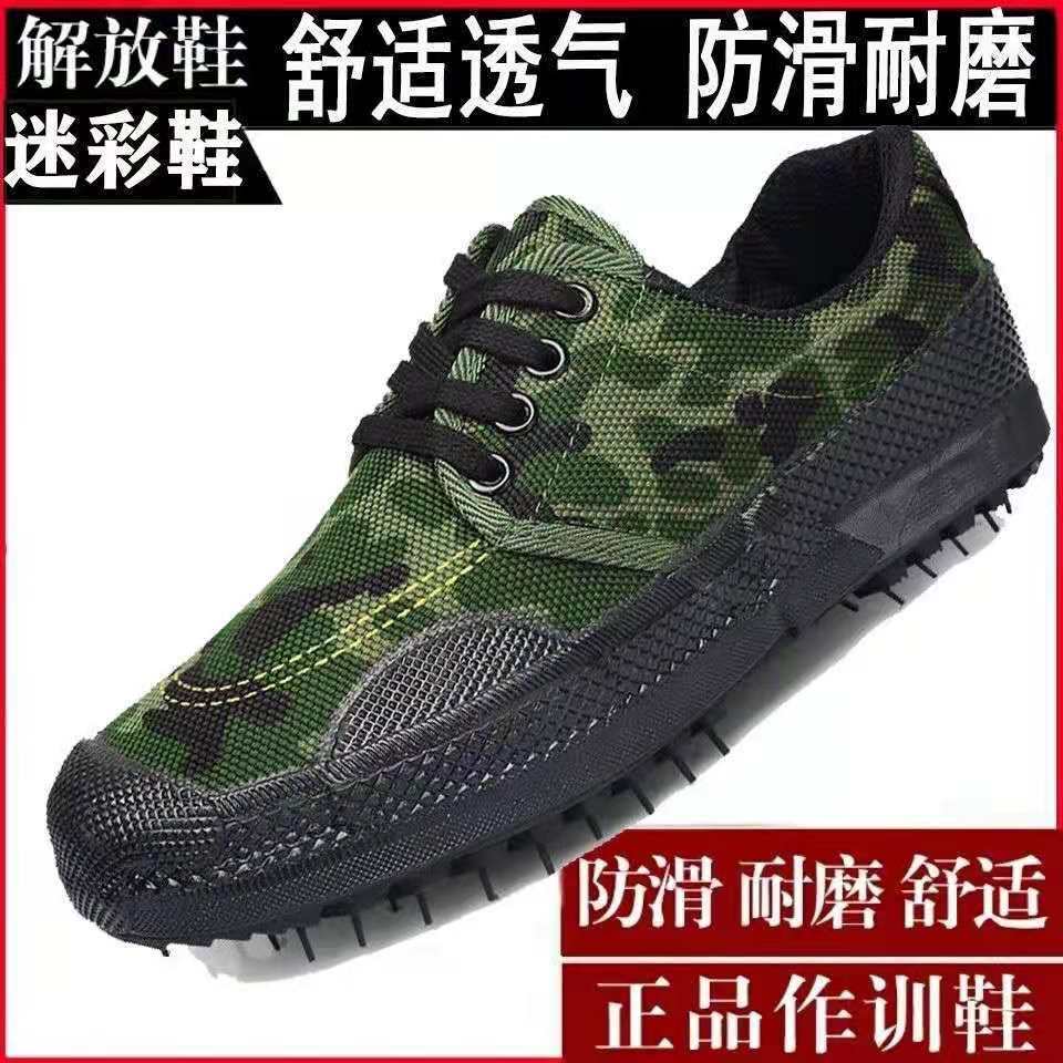 jiefang shoes men's low-top construction site wear-resistant breathable non-slip shoes women's construction site security shoes work farmland work canvas shoes rubber small flower rubber improved version +35 [225]