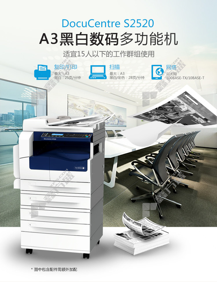 fuji xerox D Centre S2520 NDA black and white composite machine double paper box +document feeder A3 no specifications