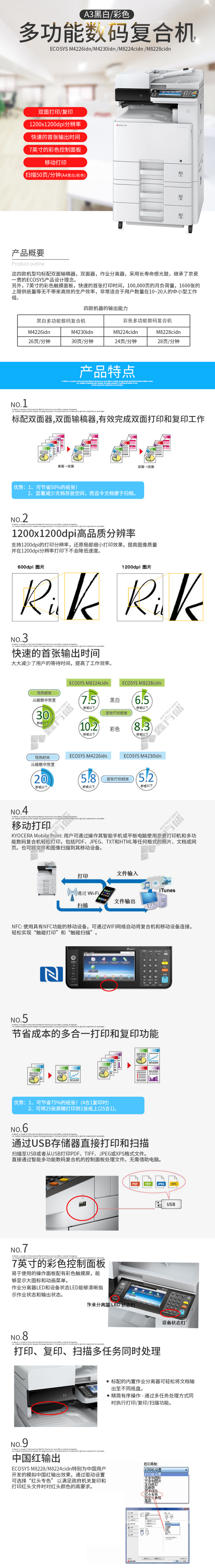 kyocera M8228cidn A3 color digital multi-function printer option 1 M8228cidn comes standard with double-sided document feeder +no specifications for network printing
