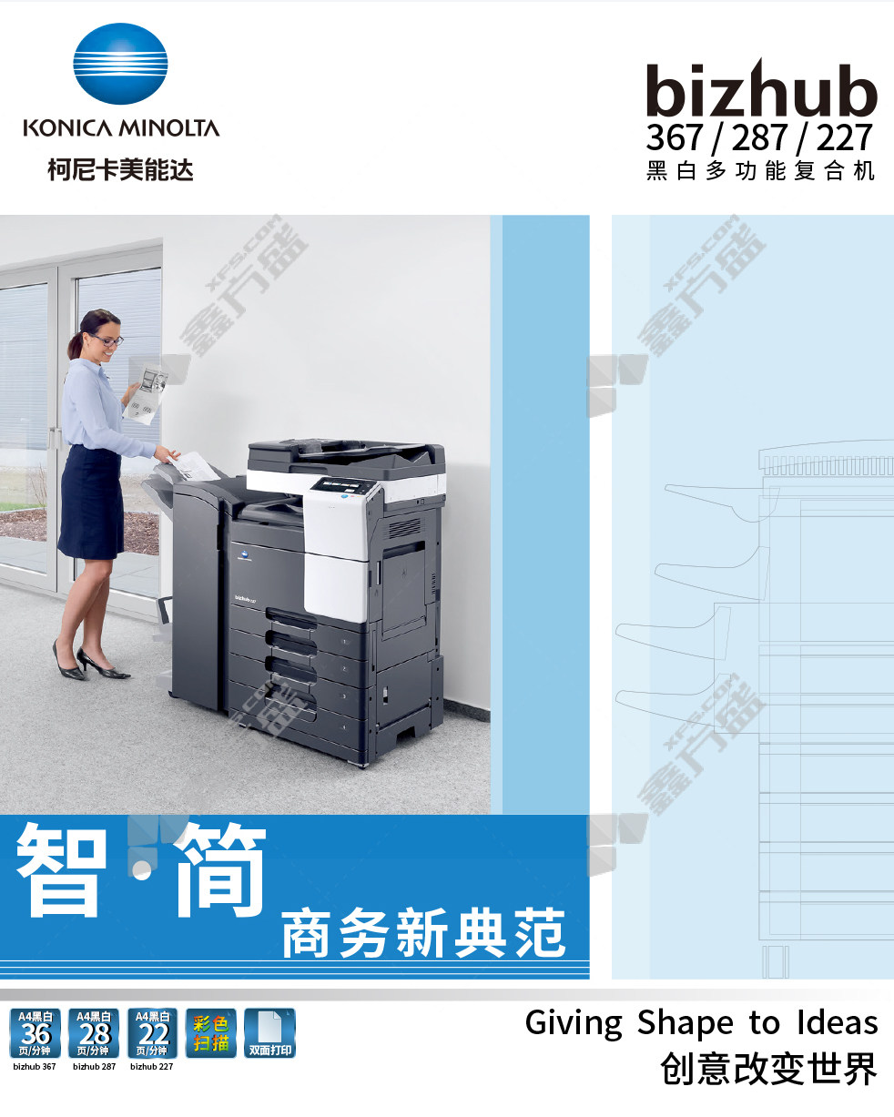 konica minolta 367 A3 black and white laser composite machine options 3 Bizhub 367 includes double-sided automatic document feeder +duplex unit +double paper box +no specifications for work base cabinets