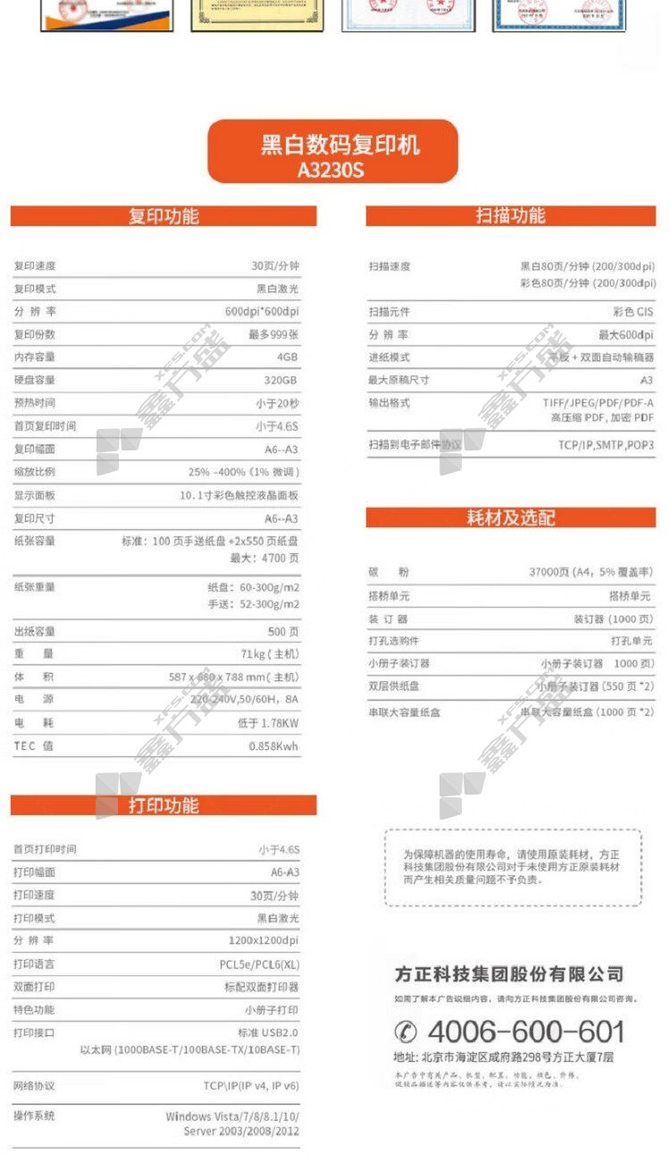 founder A3230S black and white digital composite machine A3230S standard configuration A3 25 page /minutes no specification