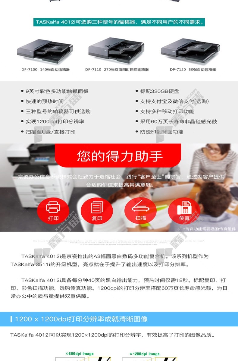 kyocera 4012 i A3 black and white multifunctional digital composite machine optional 1 4012 i standard configuration includes double-sided document feeder, no specifications