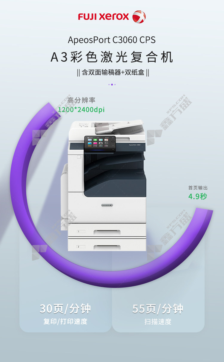 fuji xerox A3 color composite machine ApeosPort C3060 CPS 2Tray host +duplex document feeder +double paper box +no specifications for the workbench