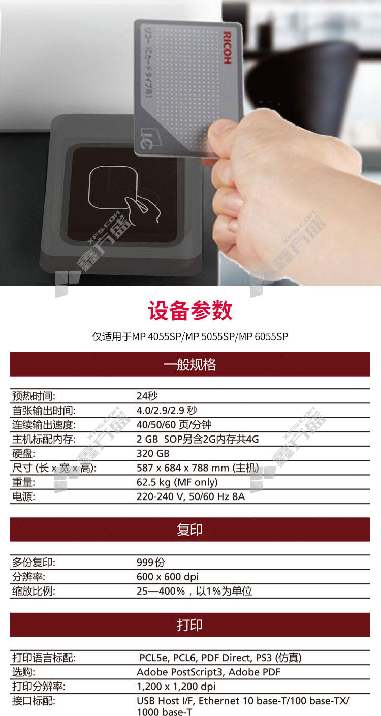 ricoh MP 6055SP A3 black and white laser composite machine options 5 MP6055SP includes double paper boxes +duplex document feeder has no specifications