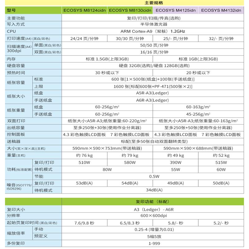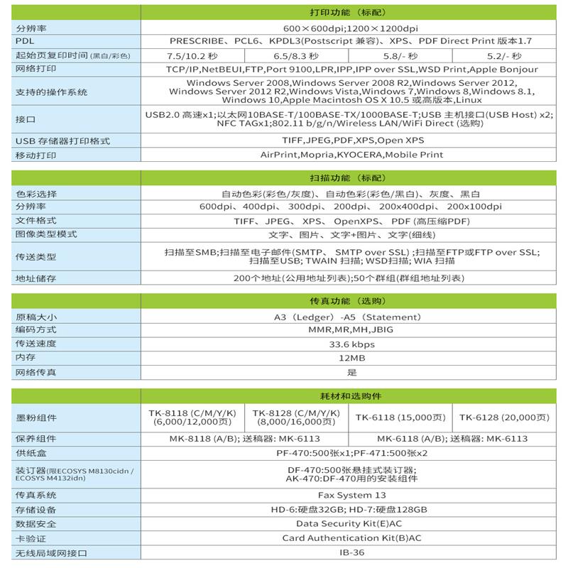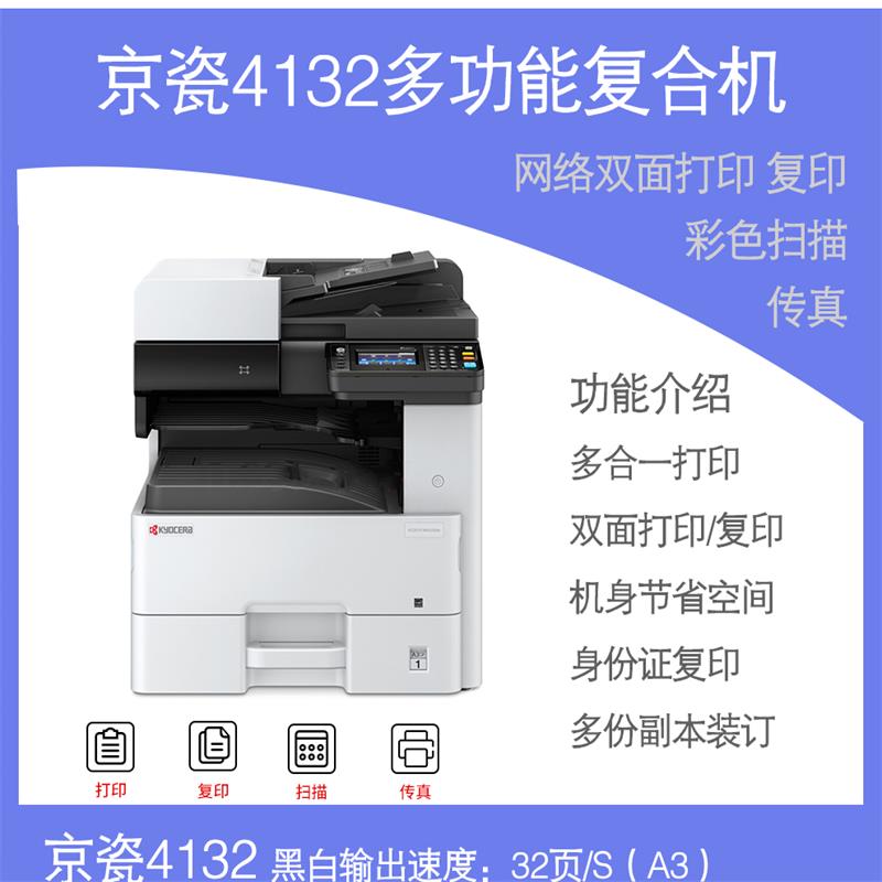 kyocera ECOSYS M4132idn A3 the black and white laser multifunctional digital composite machine comes standard with a double-sided document feeder +no specifications for network printing