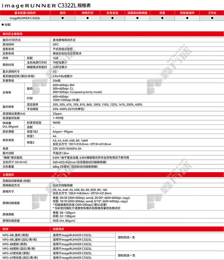 canon ( Canon) large printer commercial office a3a4 color mfp double-sided copy scanning automatic document feeder /WiFi/workbench iRC3322L no specifications