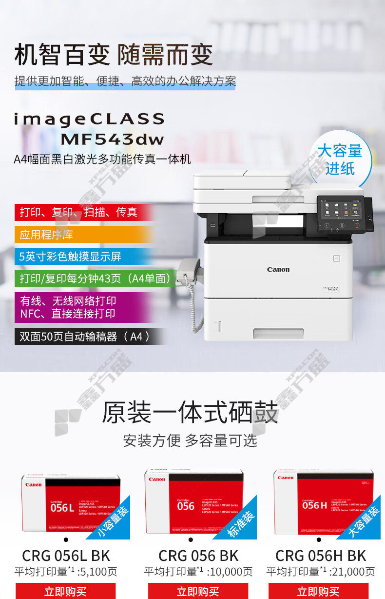 canon A4 black and white laser multifunctional wireless fax duplex machine MF543dw no specifications