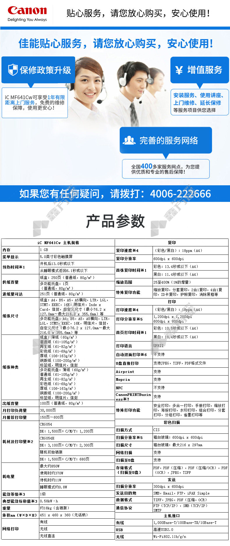 canon A4 color laser multifunctional wireless all-in-one machine MF641cw no specifications