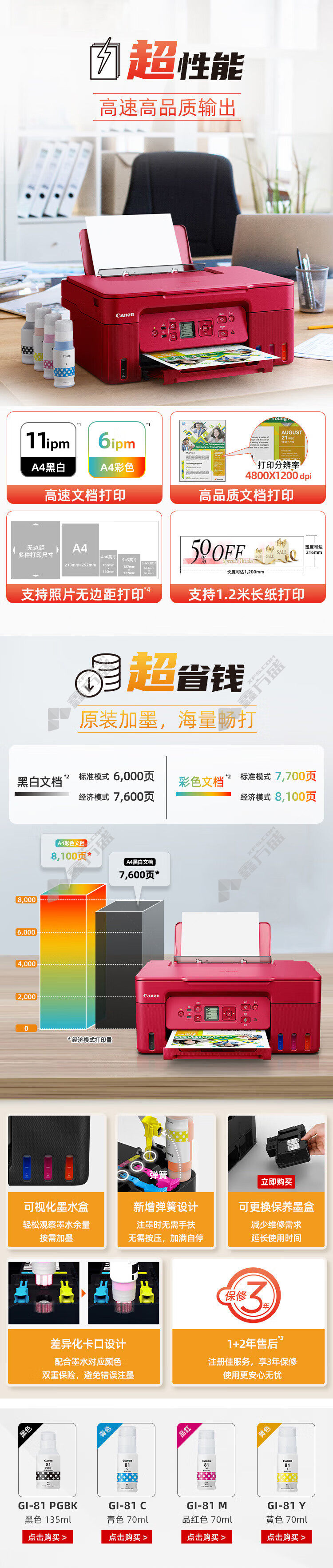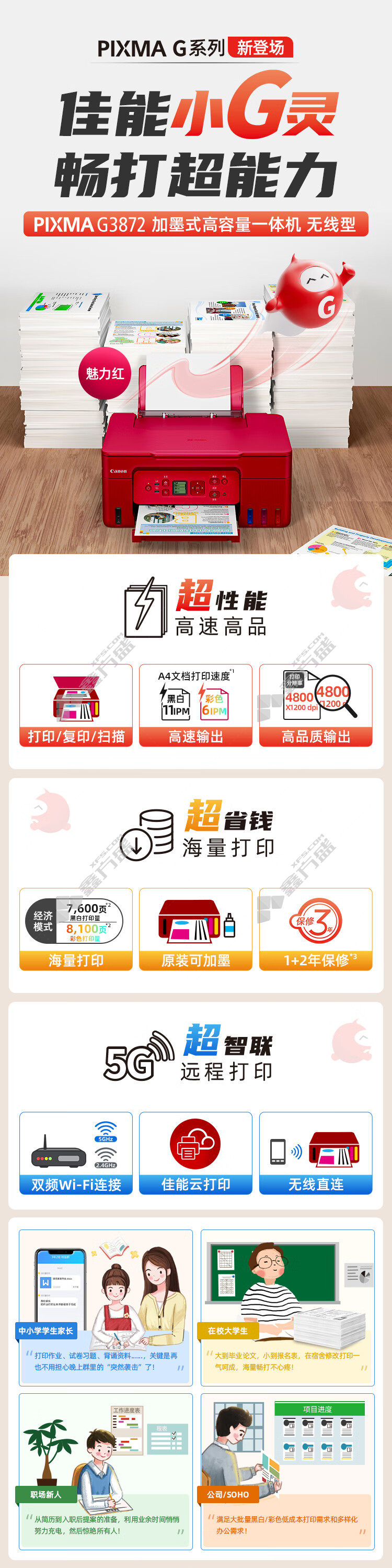 canon G3872 four-color continuous color multi-functional wireless all-in-one machine A4 no specifications