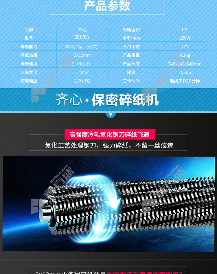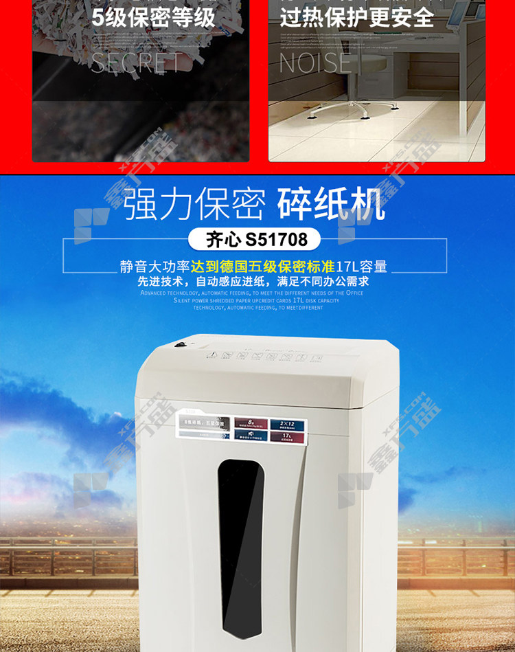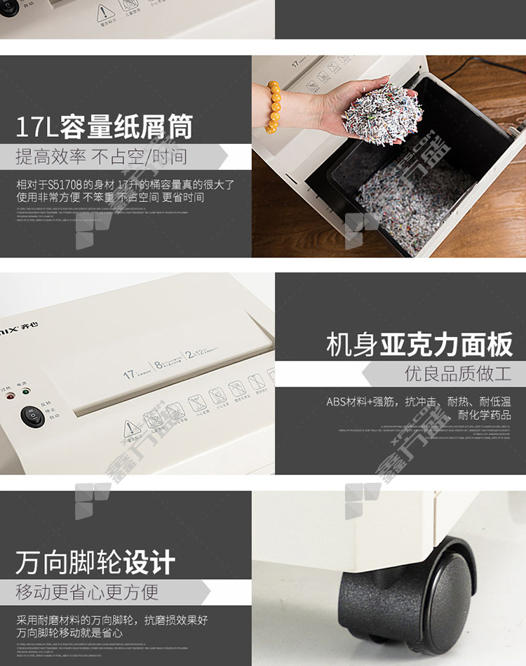 qixin powerful confidential paper shredder S333 white 2 ×12mm/8piece of paper /17L/single entrance /open envelope /battery life 10 min S333 no specifications