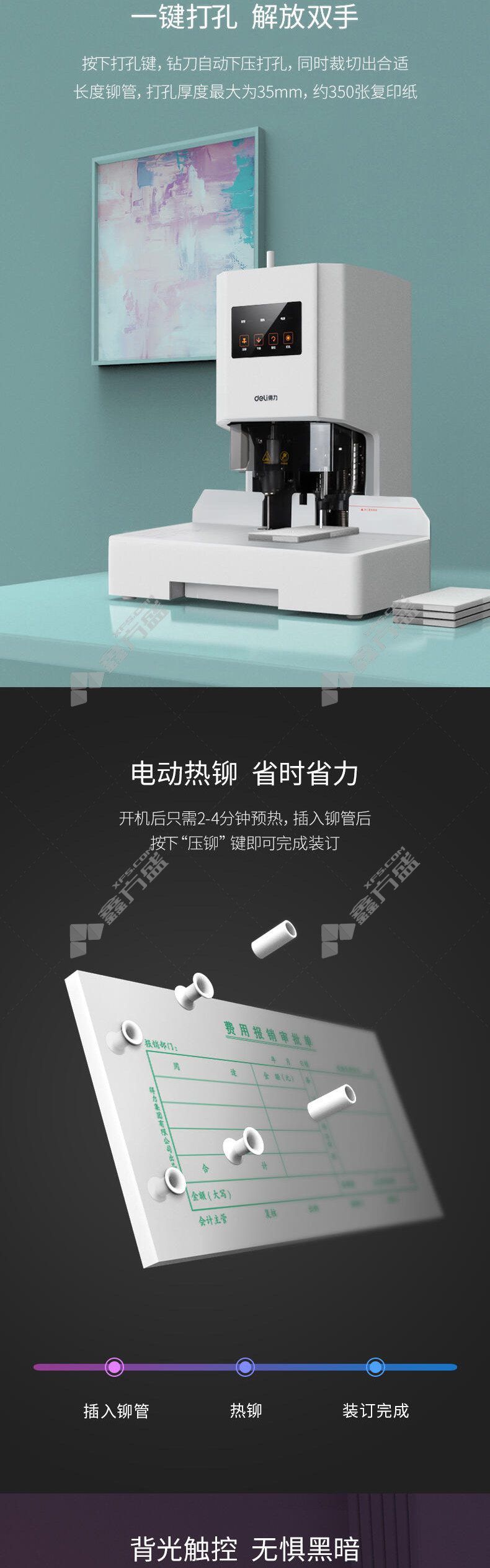deli deli 14608 financial voucher binding machine white 14608 35 mm no specifications