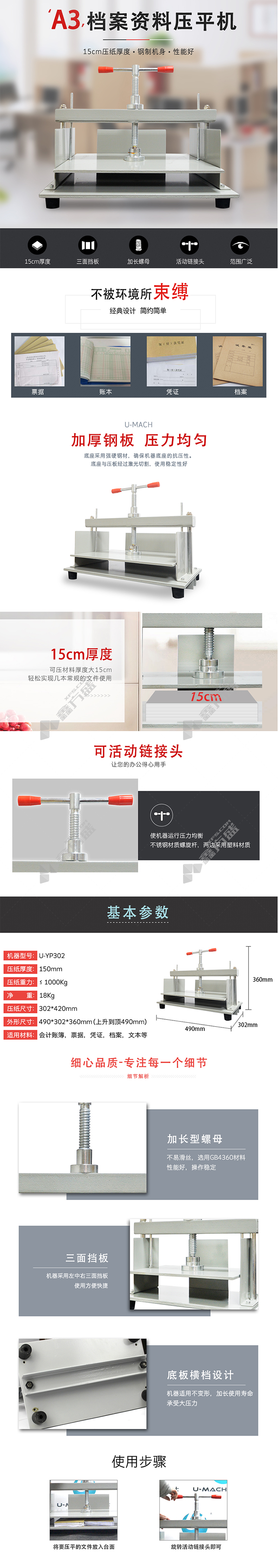 umas U-YP302 manual flattening machine A3 U-YP302(A3) white no specification