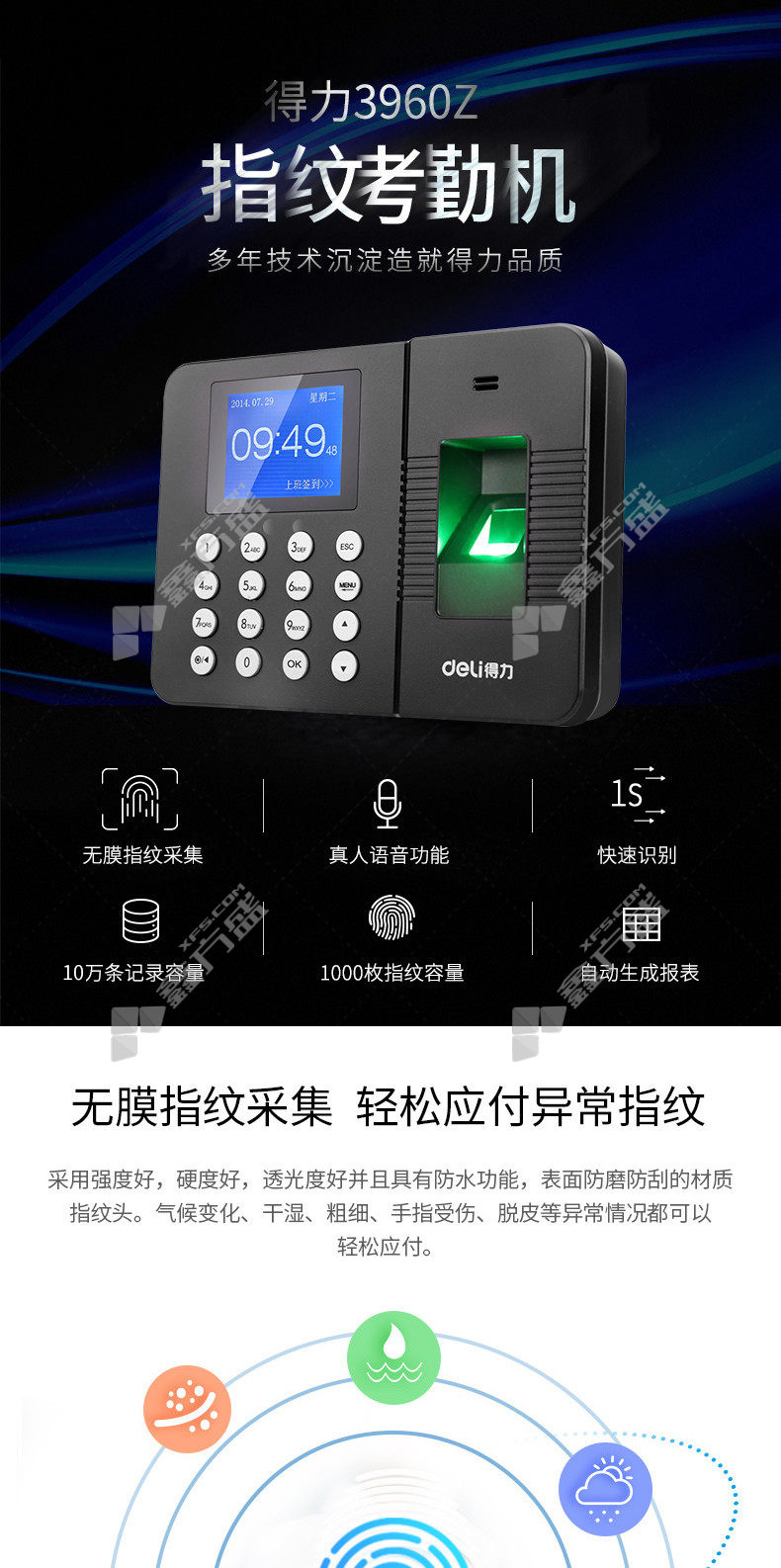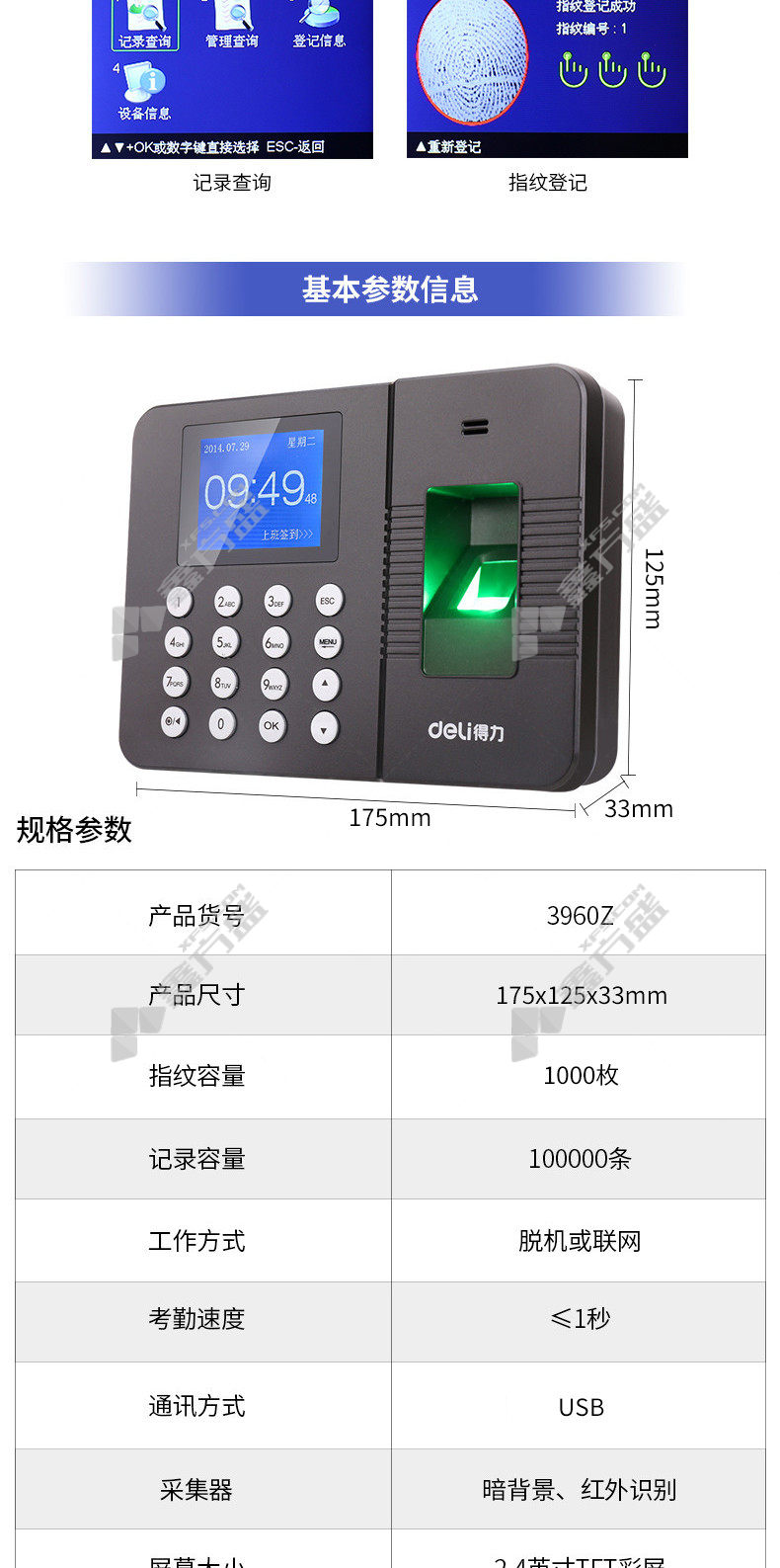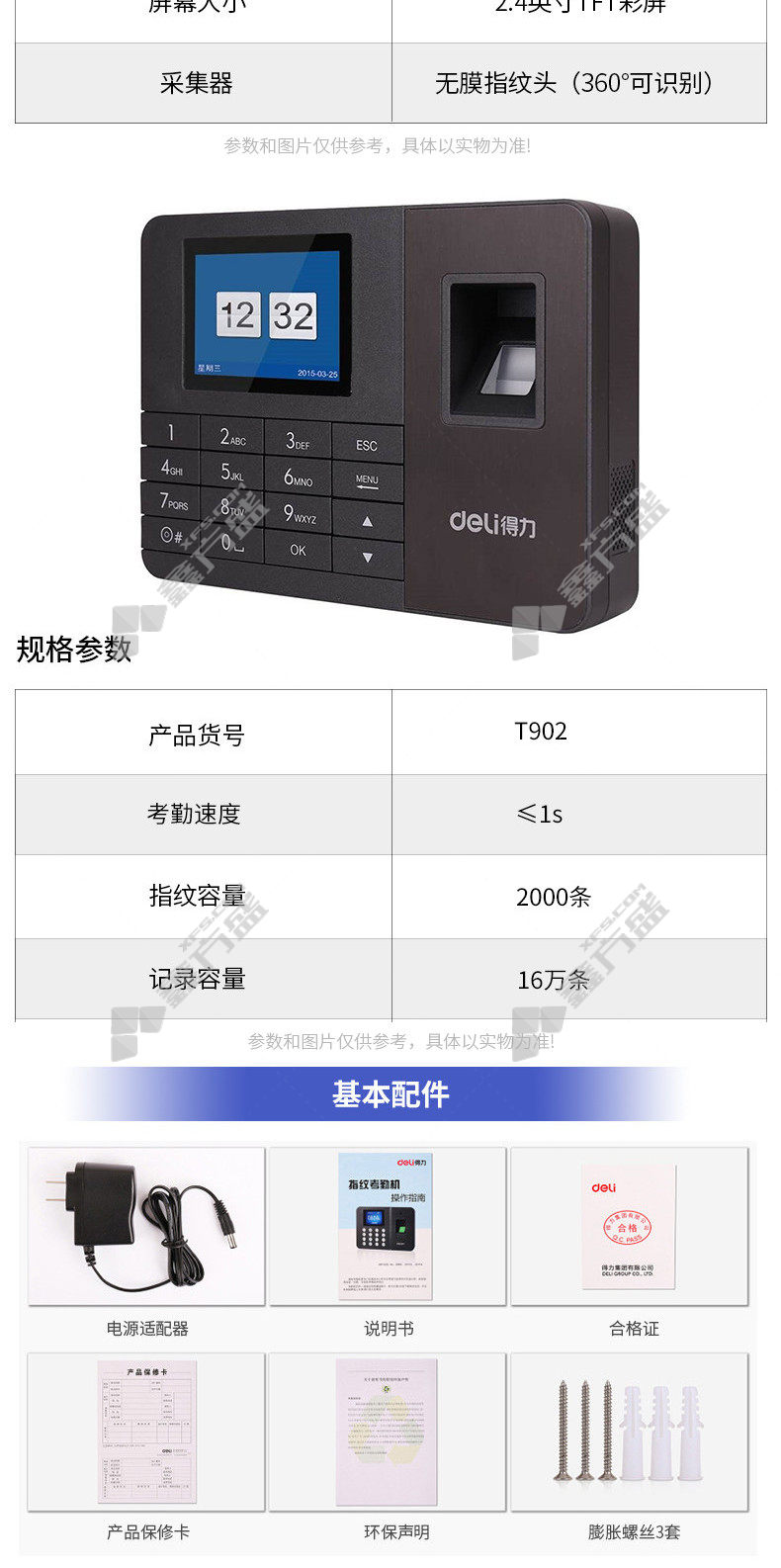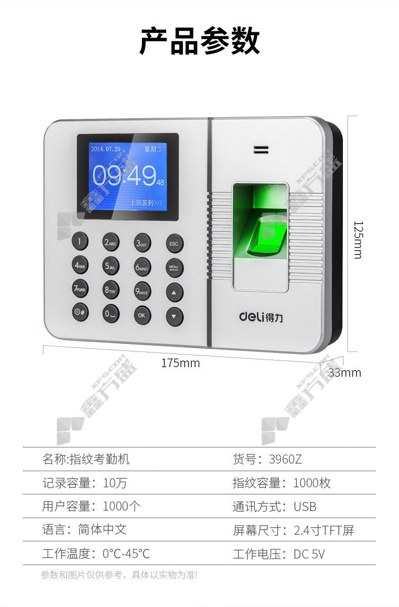 deli deli fingerprint attendance machine black 2250 Z no specifications
