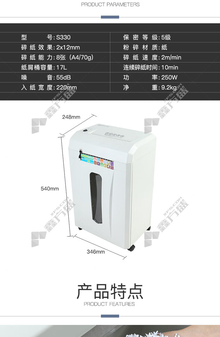 qixin powerful confidential paper shredder S330 white 2 ×12mm/8piece of paper /17L/single entrance /battery life 10 min S330 no specifications