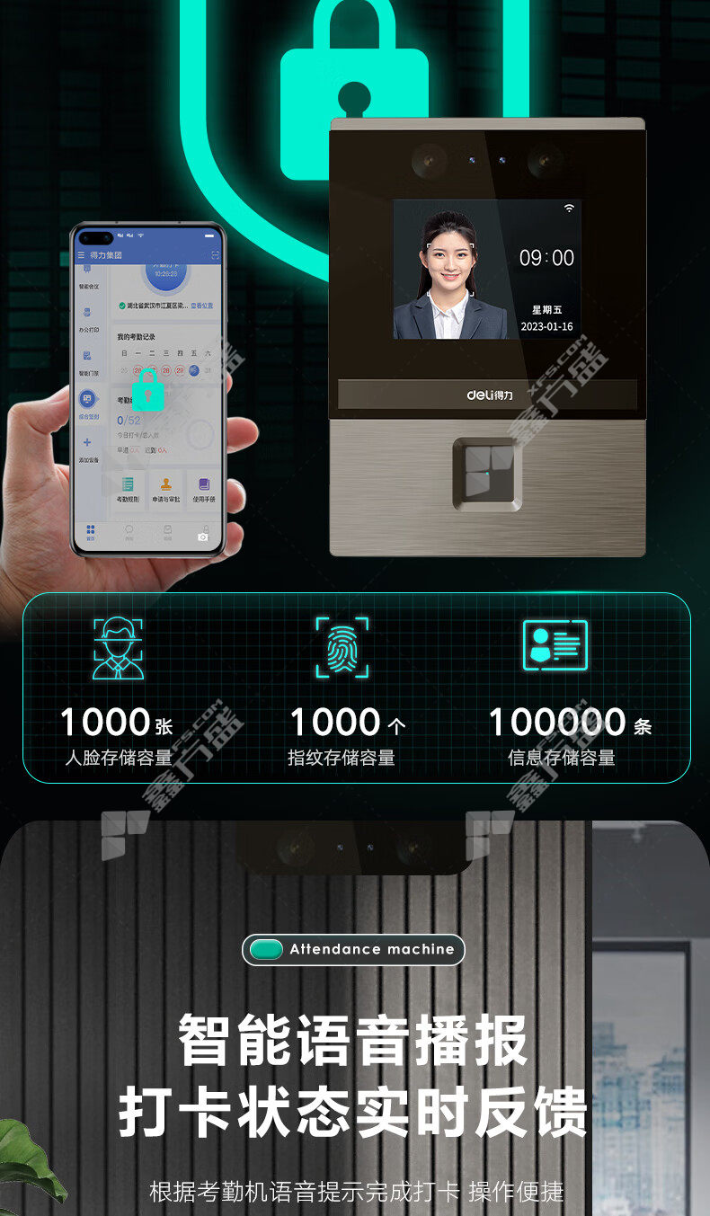 deli DL-D3 smart cloud attendance machine silver gray no specifications