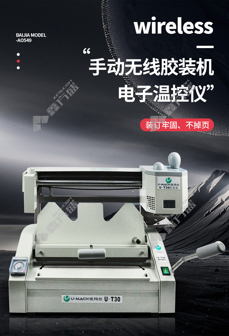 umas U-T30 cordless manual desktop hot melt glue binding machine U-T30 silver gray no specification
