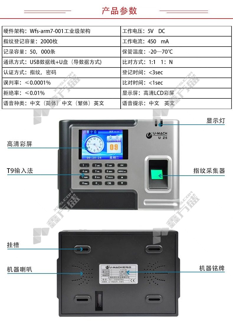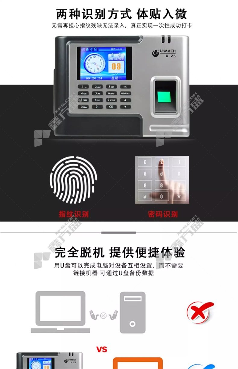 umas U-Z5 attendance machine U-Z5 fingerprint silver and black support attendance without specifications