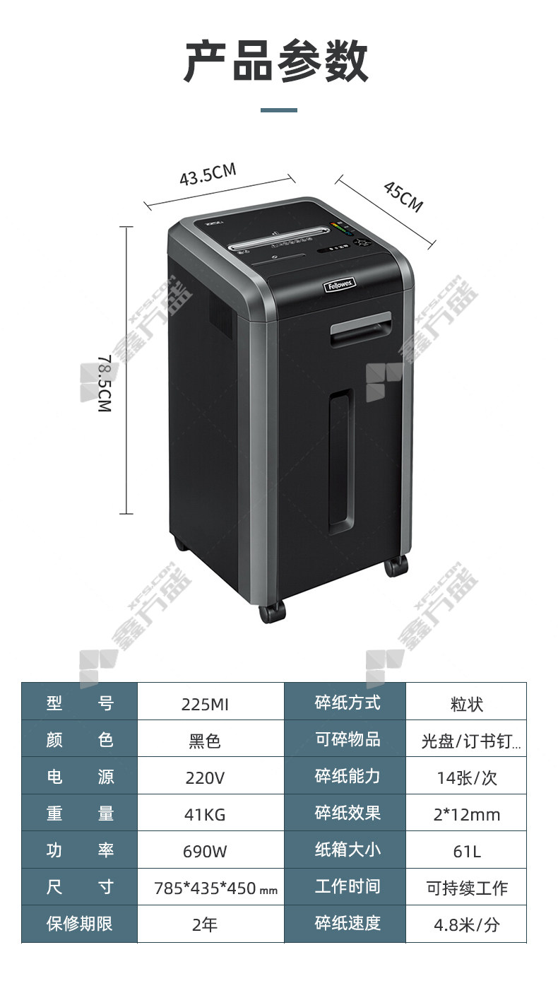 florence Fellowes 225MI shredder 225 Mi(785*435*450mm/14open /61L) no specifications