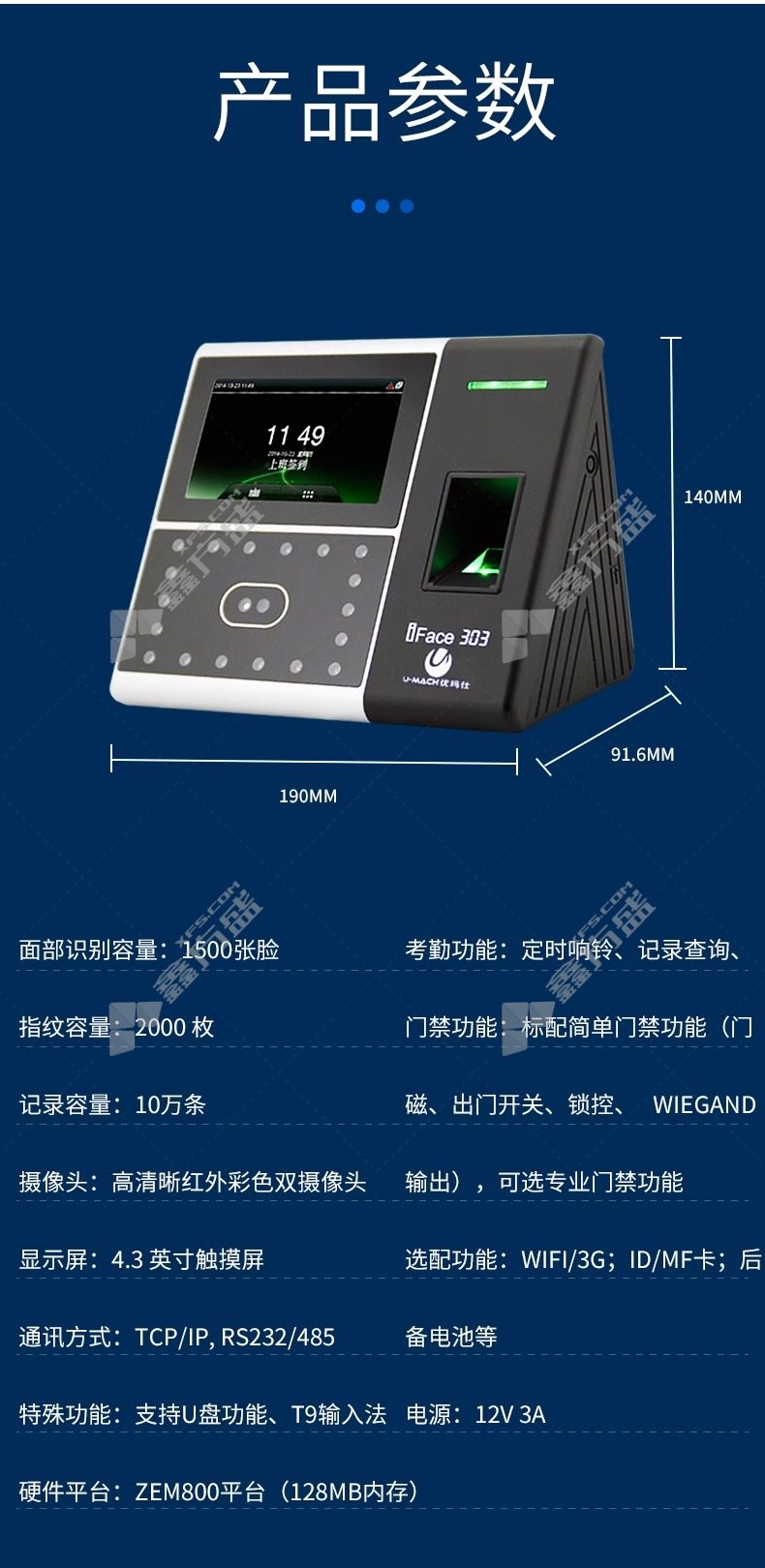 umas U-Iface303-BS attendance machine U-Iface303-BS face black 190 *91.6*140mm support attendance without specifications