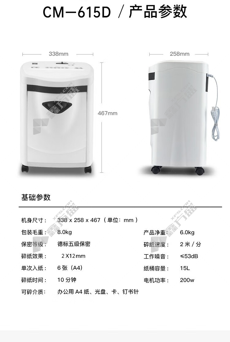 comet CM-615D commercial document shredder CM-615D A4 white 338 mm*258mm*467mm no specifications
