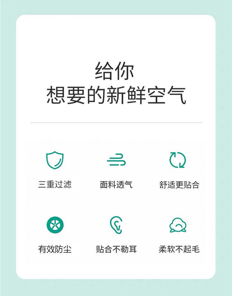 口罩收到啦价格实惠也没有异味内侧戴上没有毛毛的感觉,三层防护口罩的质量特别好、很厚实,而且没有任何的味道!这个口罩贴合度高,大小合适,是三层不勒耳朵、也不会感觉到闷,款式跟图片一样,很洋气一款口罩喜欢口罩细节之处做得非常好能够很好的包裹住。