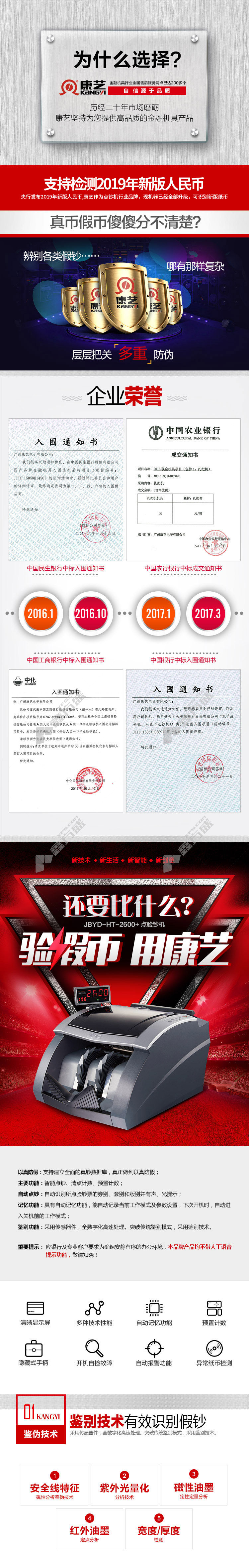 kangyi JBYD-HT-2600+ smart banknote counting machine banknote detector silver 2600 + B class no specification