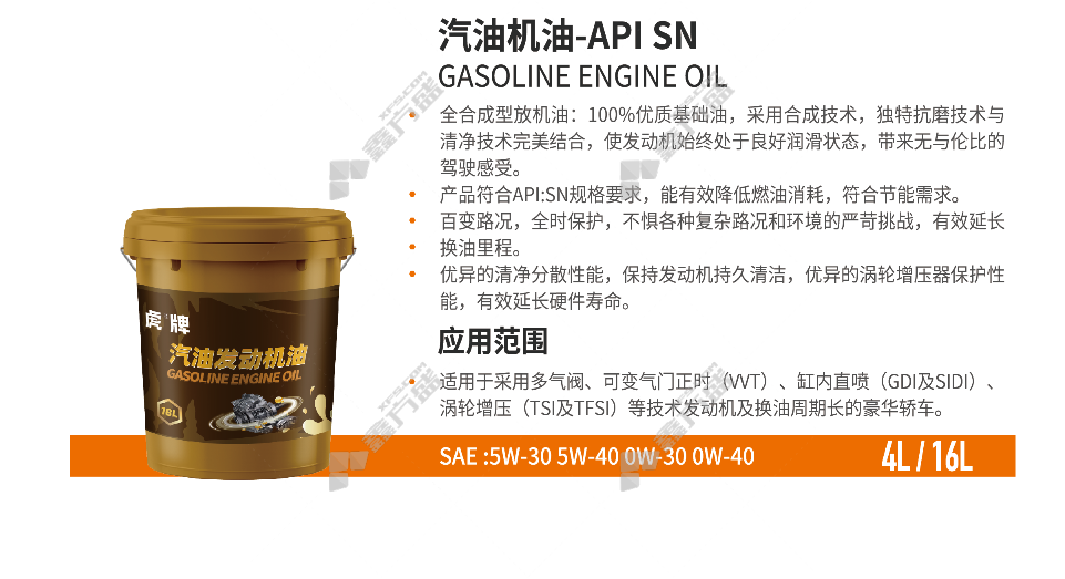 tiger gasoline engine oil SN 16L 0W-30 SN/4L/0W-30