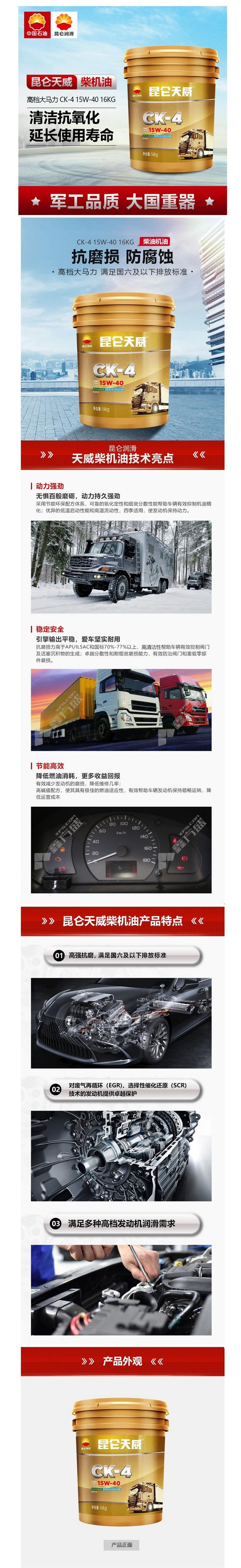 kunlun tianwei diesel engine oil CK-4 15W-40 170kg CK-4/15W-40/16kg